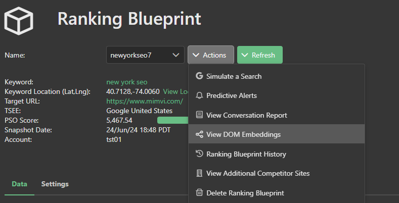 - Added TSEE Ranking: on the Analysis Group screens, on each site data row, the Target Search Engine Environment (TSEE) ranking will now be updated to show both the the current ranking position and the ranking position at time of calibration.