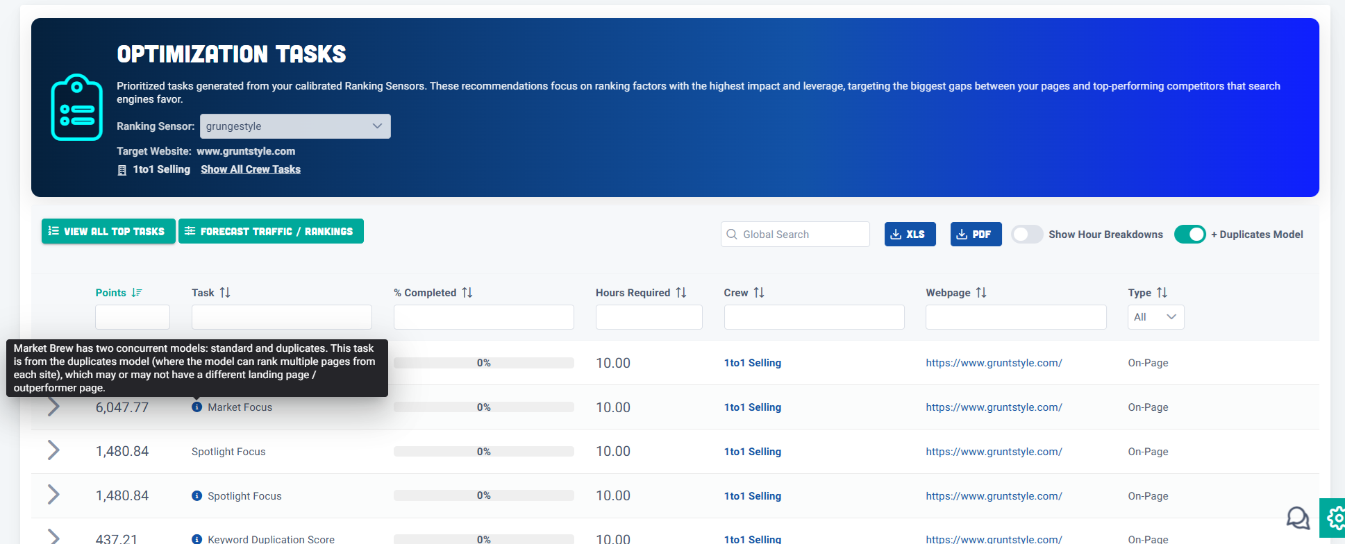 The Top Tasks screen now includes a Target Website filter, allowing you to explicitly scope tasks to a specific site.
